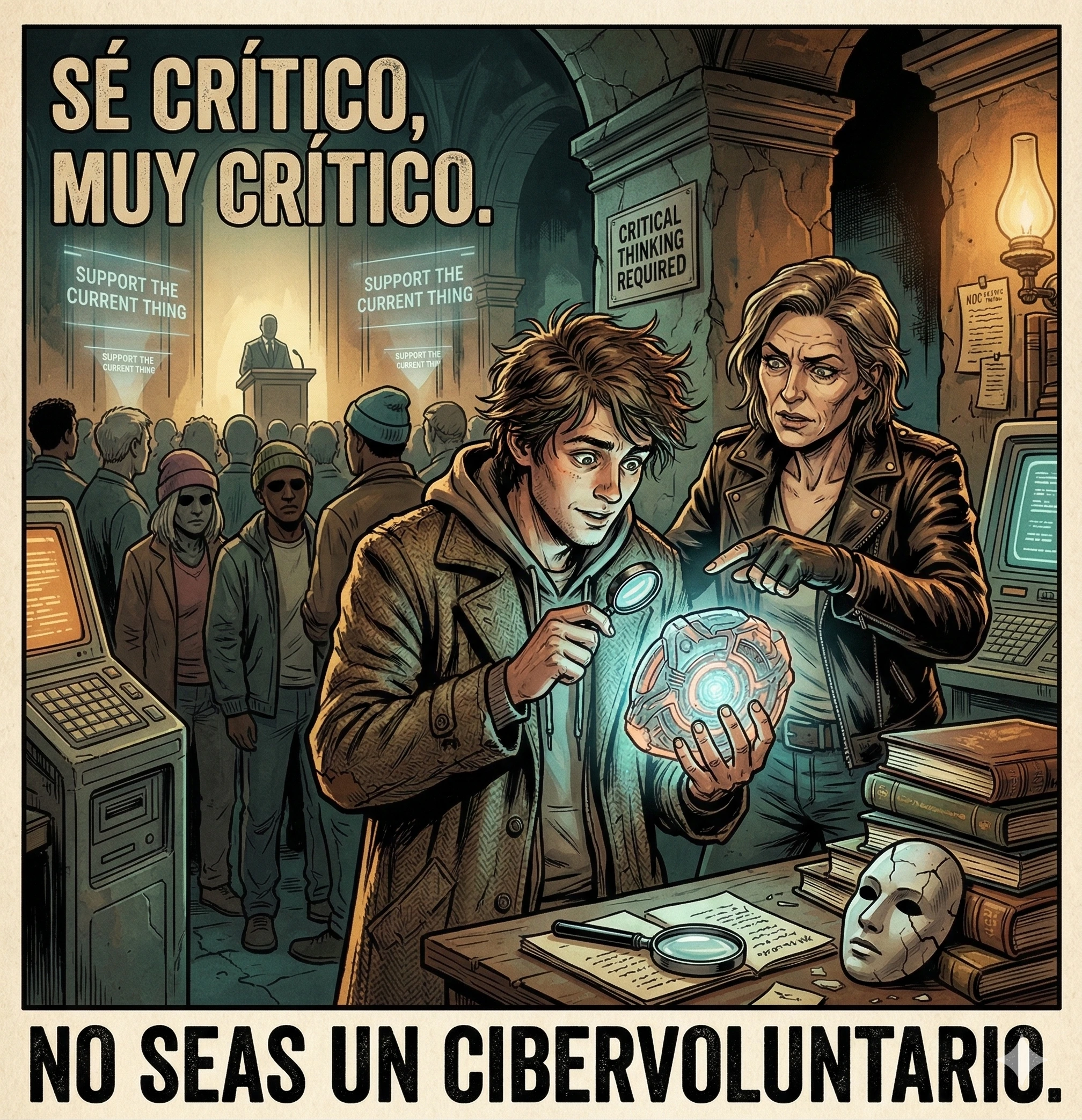 Un «cibervoluntario» es alguien que defiende una causa —sea ideológica, religiosa, empresarial o cultural— ante los demás usuarios de internet, intentando convencerlos de que sus ideales son los correctos y los del resto están equivocados. El problema es que alguien con una convicción fuerte no va por ahí pregonándola; la interioriza. Si alguien debate con él, está encantado de poner sus ideas a prueba para ver cómo mejorarlas, cómo defenderlas y qué tan bien sobreviven al intercambio. No tiene miedo a equivocarse, porque al no andar predicando sin que nadie se lo pida, sabe que rectificar es de sabios.